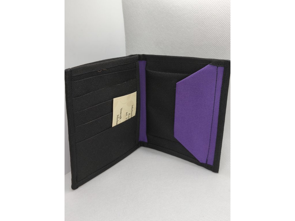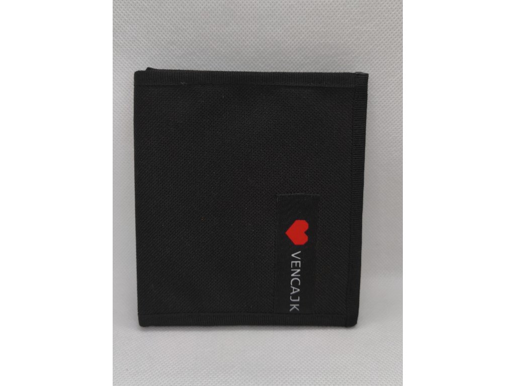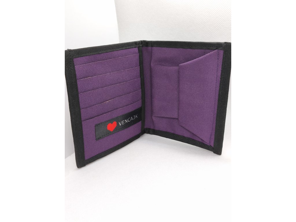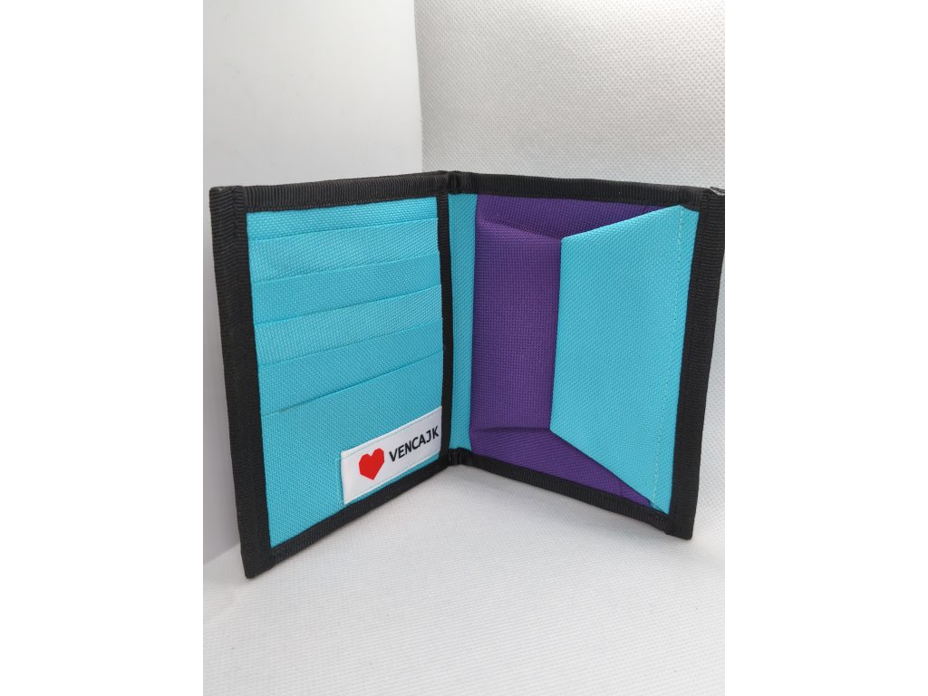 Tato peněženka je z odolného materiálu, který se dobře čistí (batohovina s polyuretanovým zátěrem) a je nepromokavá. Výhodou této peněženky je poměrně nízká váha a skladný tvar.