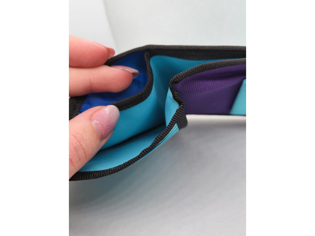 Poslední kapsička se nachází pod těmito přihrádkami, tzv. tajná kapsička, můžeš do ní dát například zbytek karet nebo doklady.