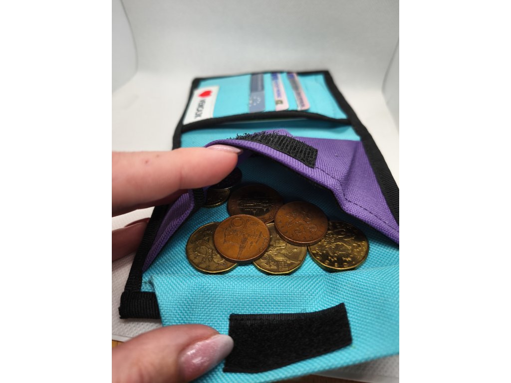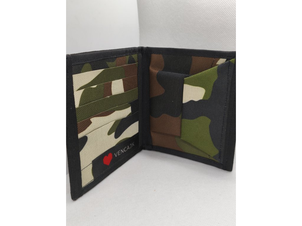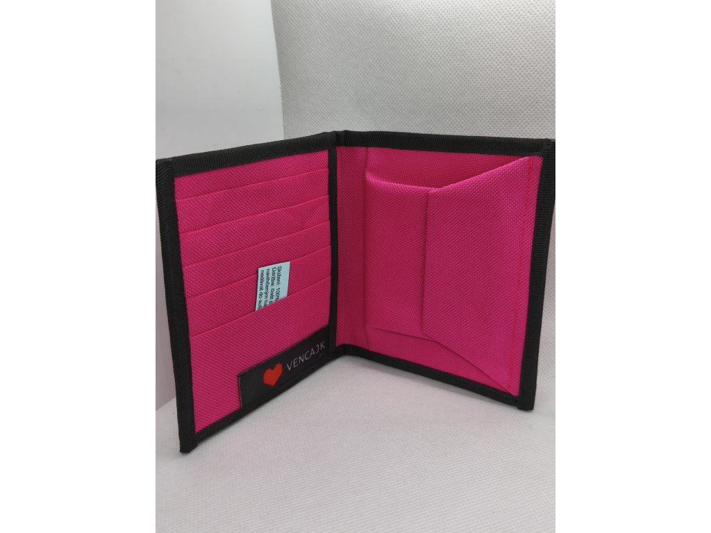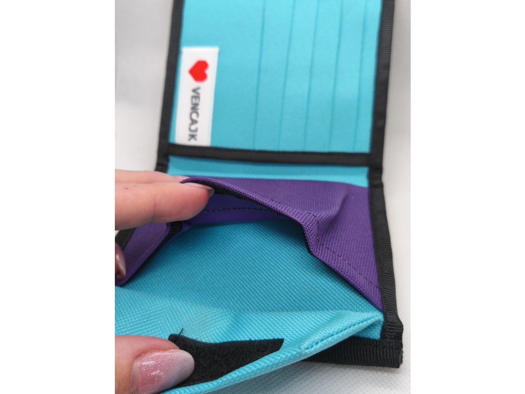 Tato peněženka má 2 velké přihrádky na bankovky a praktickou kapsičku na suchý zip na mince.